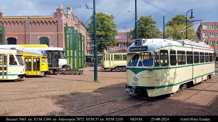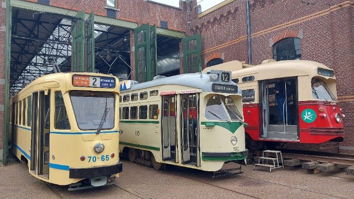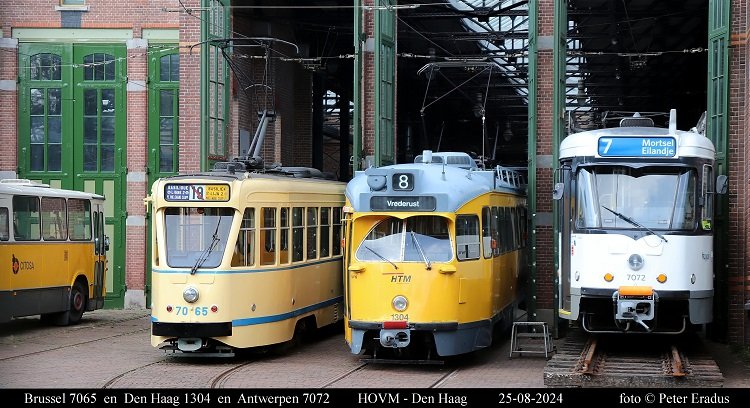 Op deze zondag 25 augustus 2024 de bescheiden maar unieke line-up van drie PCC wagens in het Haagse Openbaar Vervoer museum. Deze keer was er een PCC uit Antwerpen op bezoek.