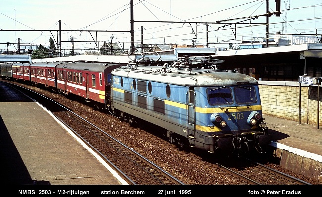 Op 20 september 1986 was de inzet in de Benelux dienst bijna ten einde, een goed moment om nog even af te reizen naar Schiedam-Rotterdam West (thans Schiedam Centrum) om zo'n Internationale blauwe combinatie (met voorop een NMBS treinstel) op de foto te zetten op weg van Amsterdam naar Brussel.