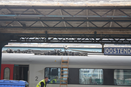 Vandaag stond de MS486 stil op spoor 6 in het station van Oostende. Wie weet wat er gebeurd is? Op de terug weg stond de ES 509 bezig met de bovenleiding ter hoogte van de stelplaats.
