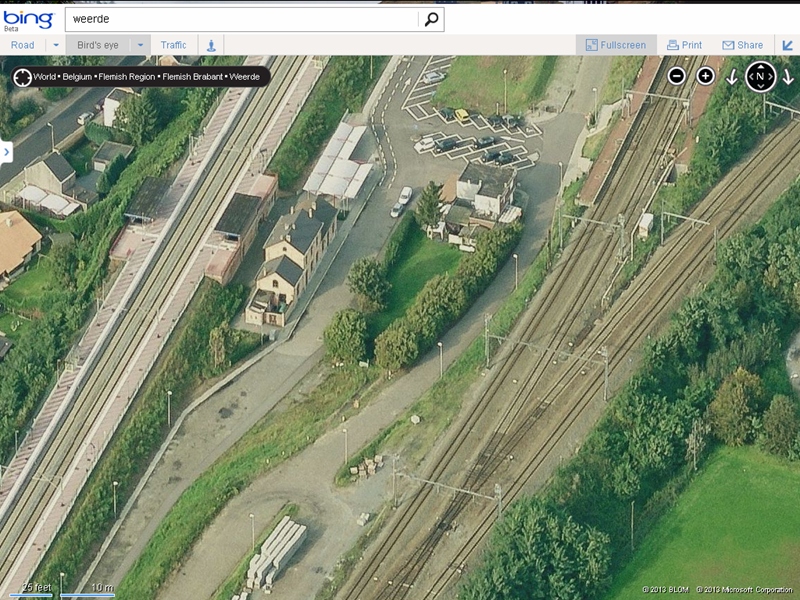 Van Weerde is er ook een vogelvluchtfoto (schuin naar beneden gericht i.p.v. verticaal), maar het ligt kennelijk net aan de noordgrens van een gebied dat door vogelvluchtopnamen gedekt is, want normaal kun je vogelvluchtfoto's van een bepaalde lokatie van vier zijden genomen aantreffen, maar ik zie er hier alleen een vanuit het zuiden genomen. Als je het plaatje met de pijltjesknop rechts roteert, dan wordt weer de normale minder gedetailleerde verticaalopname getoond (kunstmatig schuingelegd alsof je in vogelvluchtperspectief kijkt). (Verticaal of niet kun je soms goed zien aan de getoonde gevels en aan de vorm van de (zadel)daken van huizen.)