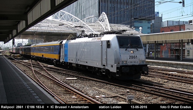 De nieuwste aanwinst in de Beneluxdienst, Railpool lok 2861 met trein bij doorkomst te Leiden.