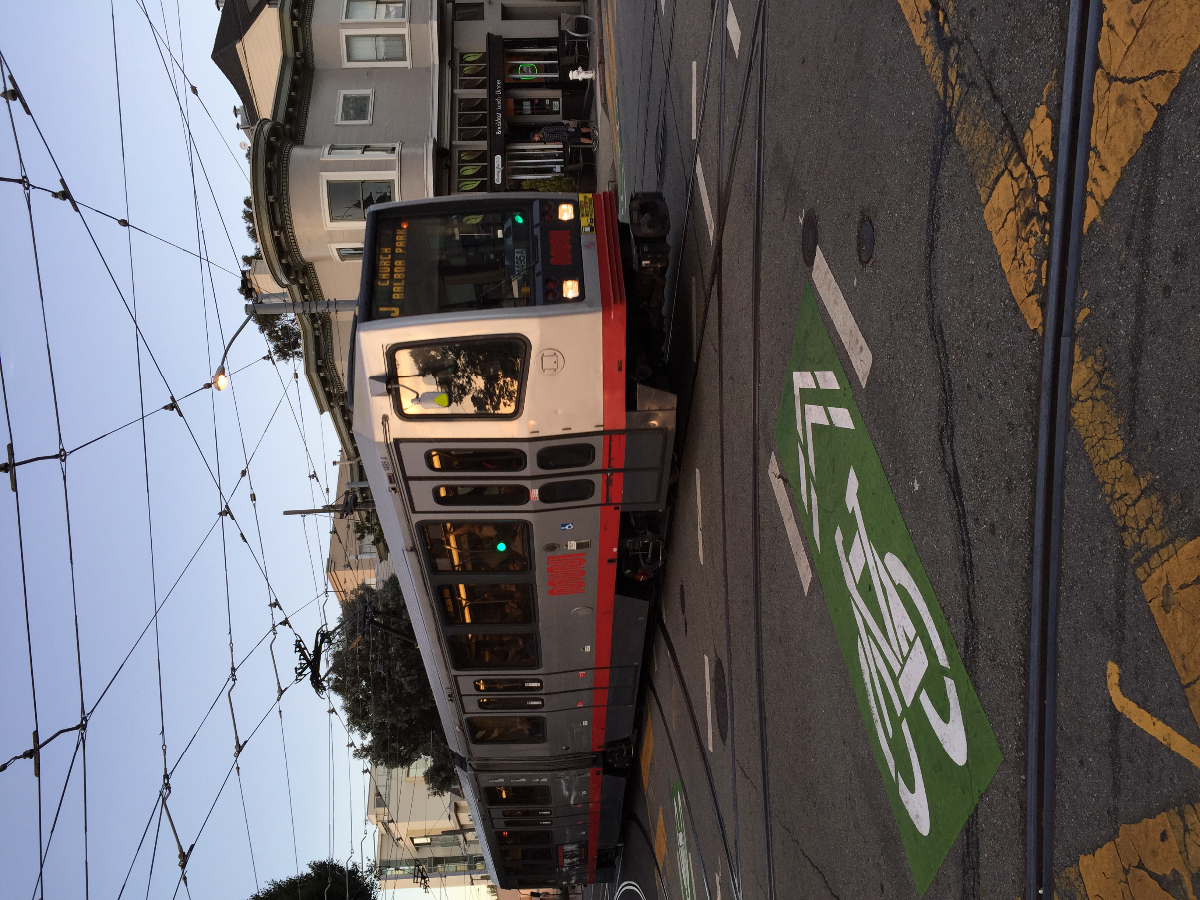 Nog een beeld van een tramstel dat op een van de andere lijnen rijdt in San Fran. Ze behalen een hoge snelheid in de metrotunnels en beschikken over een groot vermogen om de stijle hellingen op te rijden.