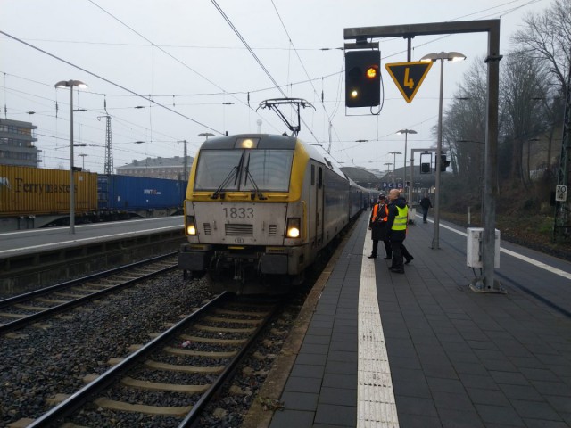 Vanaf Aachen hbf hebben de treinbegeleiders van depot welkenreadt die met de vlag zwaaien tot Brussel en omgekeerd.