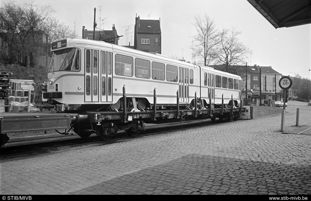 In een verder verleden was er ook een verbinding met het tramnetwerk aan station Ukkel-Kalevoet - de meeste of misschien zelfs alle PCC-trams (waarvan er nog steeds een honderdtal rondrijdt) zijn daar geleverd. Afgaand op luchtfoto's is die verbinding ergens tussen 1977 en 1987 opgebroken, samen met de hele goederenkoer van station Kalevoet. Hieronder een foto van zo'n levering - ik weet niet of er buiten deze verhoogde kade ook een gelijkvloerse verbinding was.