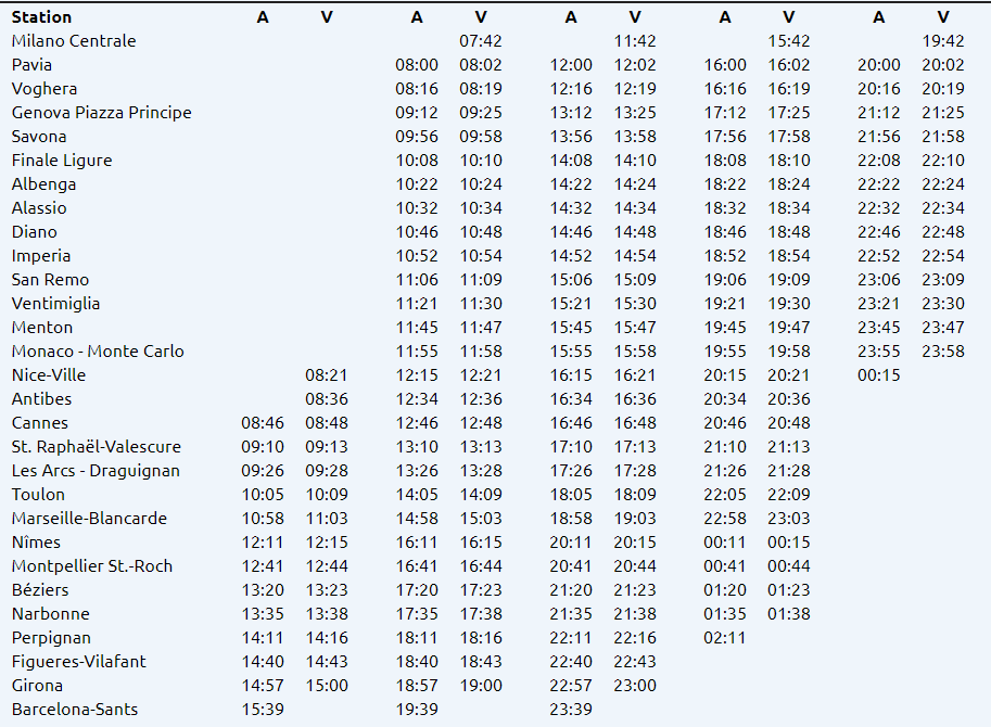 EX-4: Barcelona - Montpellier - Marseille - Nice - Milano