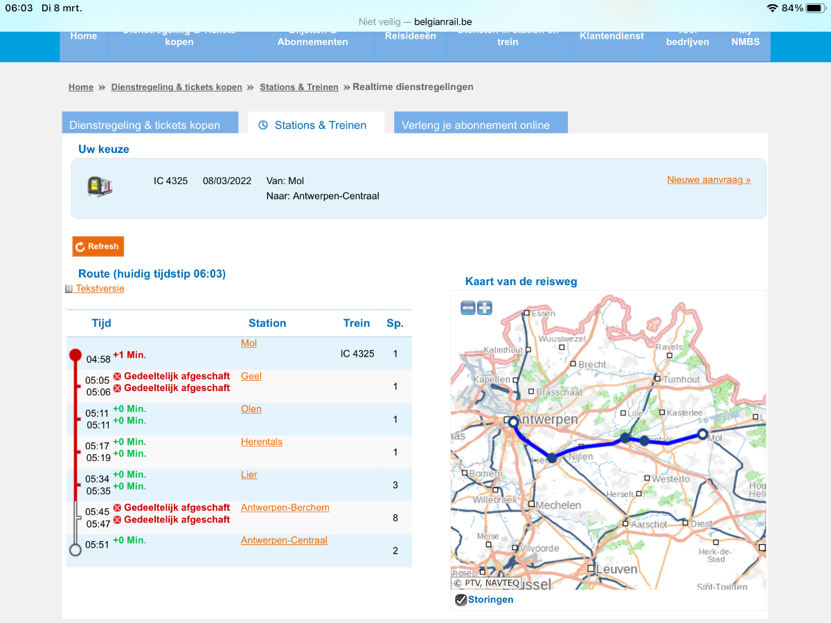 De realtime van de NMBS werkt hier over het algemeen ook, storingsberichten uiteraard niet.