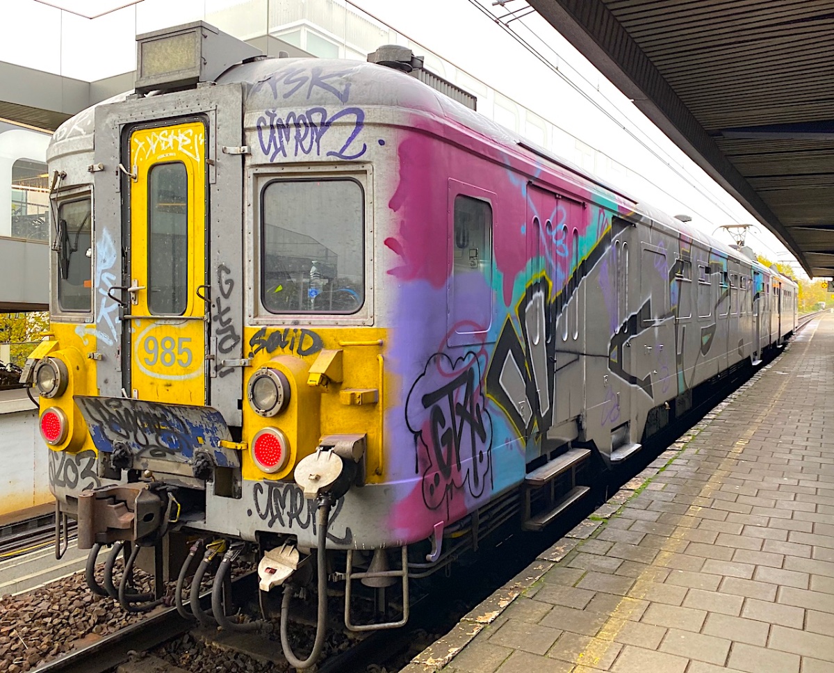 Kan je je enig Europees land voorstellen waar je zoiets (afgedankt materieel dat volledig onder de graffiti zit) op een HOOFDverbinding aantreft? Ik ben bang dat je minstens tot in Roemenië. of zelfs nog verder, moet gaan zoeken.