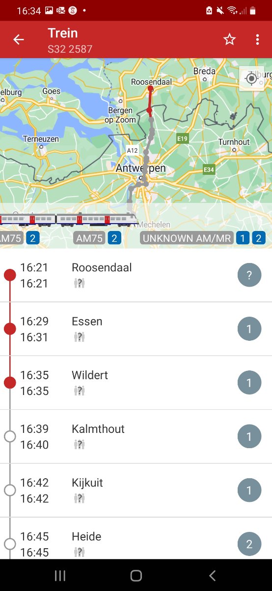 Volgens de Nederlandse website Treinposities rijdt trein 2587 (V Roosendaal 16:21 A Puurs 17:53) met een MS80. Hyperrail geeft een MS75 met een 'Unknown AM/MR' aan. Is er iemand die weet met welk materieel deze trein daadwerkelijk rijdt/gereden heeft? Als dit daadwerkelijk een Break of Klassiek zou betreffen, dan moet dat zeker in Roosendaal een zeer uniek aangezicht zijn geweest.
