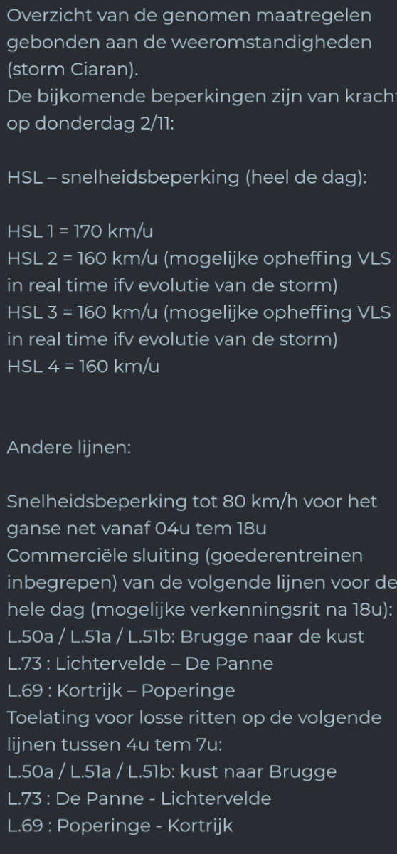 Ik vrees dat ze dit morgenochtend gaan doen hun kennende.ovspotter_be schreef: ↑01 nov 2023, 12:11 Eens zien hoe lang het duurt voor de NMBS hierover gaat communiceren.