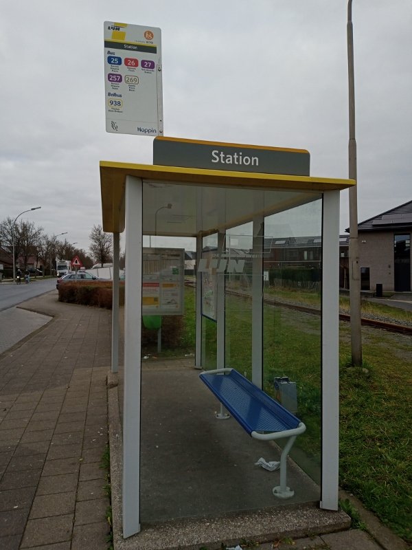 Hieronder een paar foto's van het spoorwegstation Sint-Amands en de ernaast gelegen bushalte.