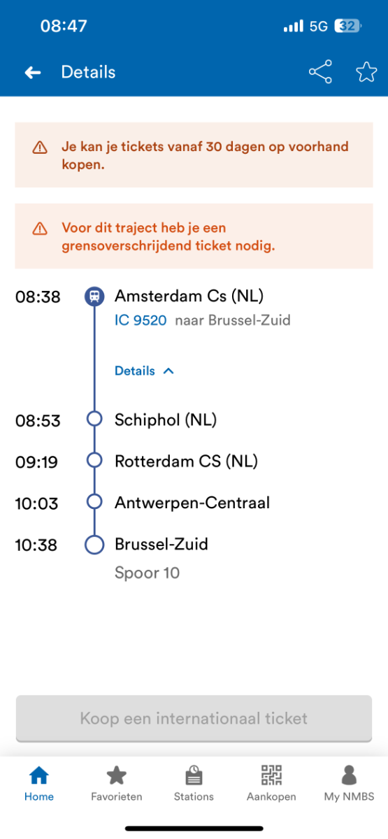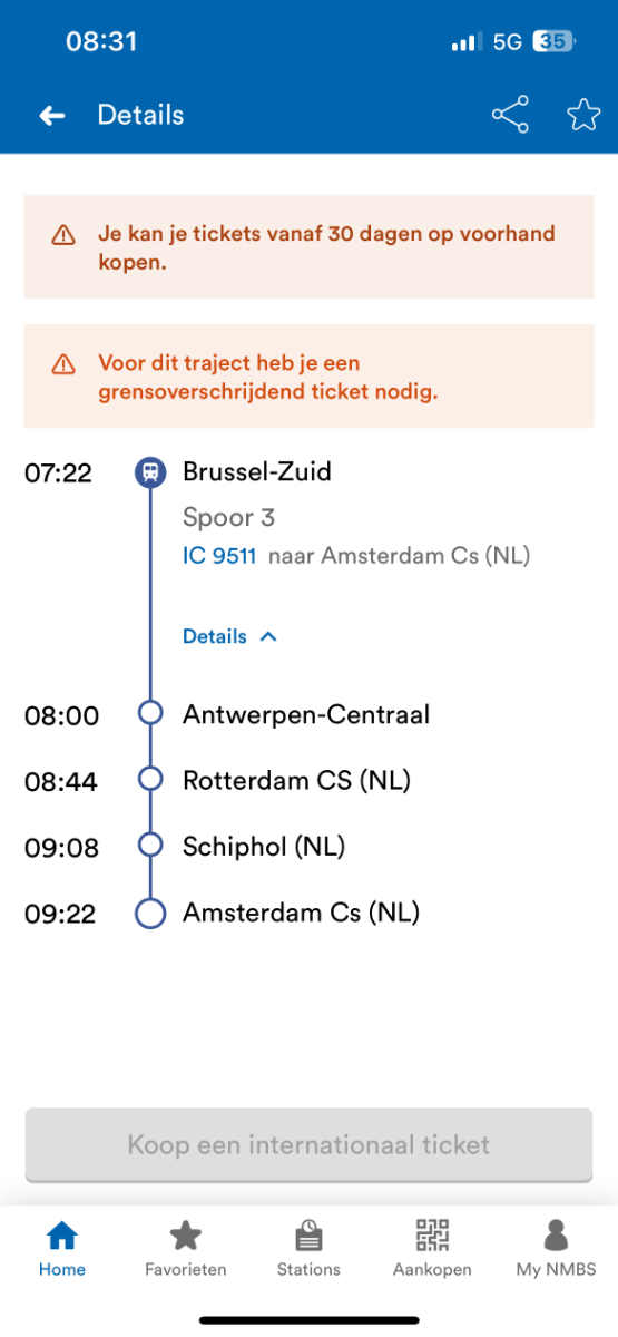 Brussel Amsterdam om 7u22/12u22/15u22/20u22