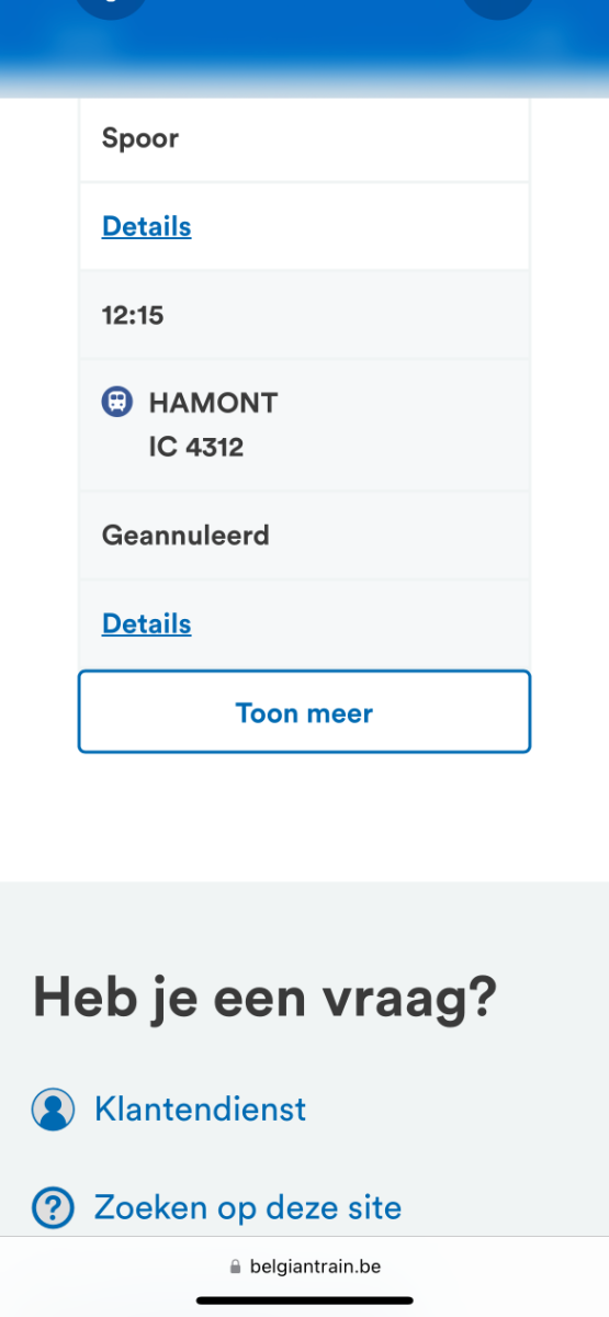 Zowel bij Hyperrail als bij railer (IOS) wordt druk gewerkt om de composities terug werkende te krijgen. Deze worden nu automatisch meegeleverd met de API call naar nmbs. Op dit moment wordt dit uitvoerig getest (https://github.com/iRail/iRail/issues/512).Wout912 schreef: ↑19 apr 2024, 19:33Iets wat dan weer een stap achteruit is, is dat de TrainMap van NMBS in alle stilte is gestopt met werken. Ik gebruikte die pagina zeer regelmatig om de samenstelling van treinen te raadplegen.dovaere schreef: ↑19 apr 2024, 15:23 De NMBS-website toont nu ook (net zoals de NMBS Lab-app) de (vermoedelijke) treinsamenstelling,tot een tweetal dagen vooraf, wat je voorheen enkel in andere apps zoals HyperRail/Haltelink (en dan enkel terwijl de trein reed) zag: