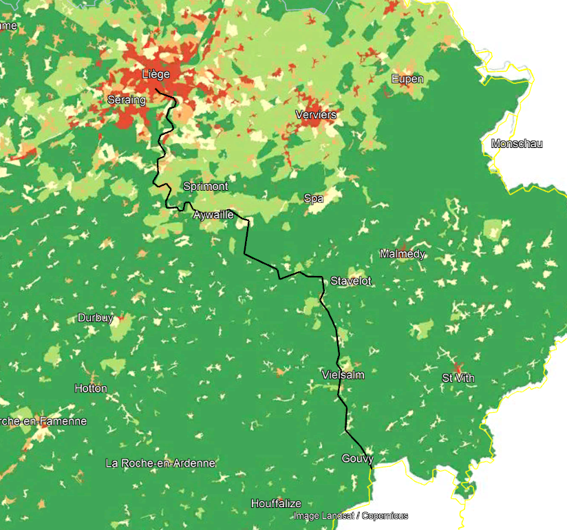 EDIT: hieronder het kaartje met de bevolkingsdichtheid rond L42. De rode, oranje en gele gebieden zijn waar de mensen wonen en waar het treinaanbod dus op afgestemd moet worden. Wat valt je op?