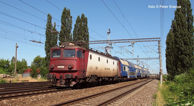 - Op de bovenste foto is de 6-assige lok CFR 40-0373-6 bezig aan haar laatste kilometers naar București Nord met een korte Dubbeldeks trein en nadert hierbij het emplacement van Chitila.