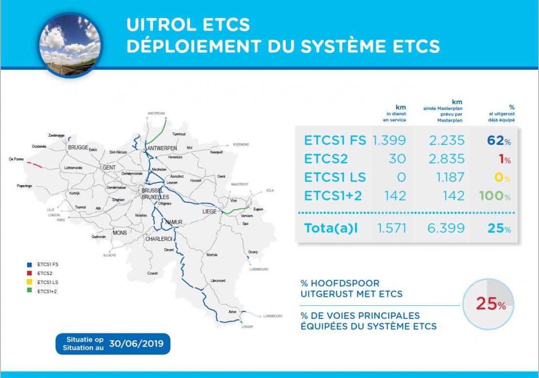 Volgens deze informatie van Infrabel zal uiteindelijk 3422 km ETCS 1 (Full Supervision of Limited Supervision) krijgen en 2835 km ETCS 2 en 142 km ETCS1+2.