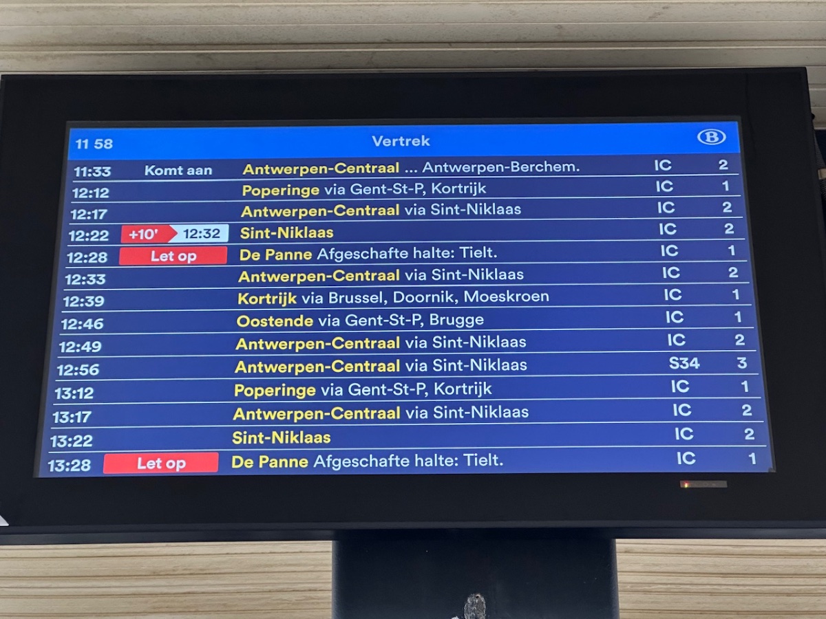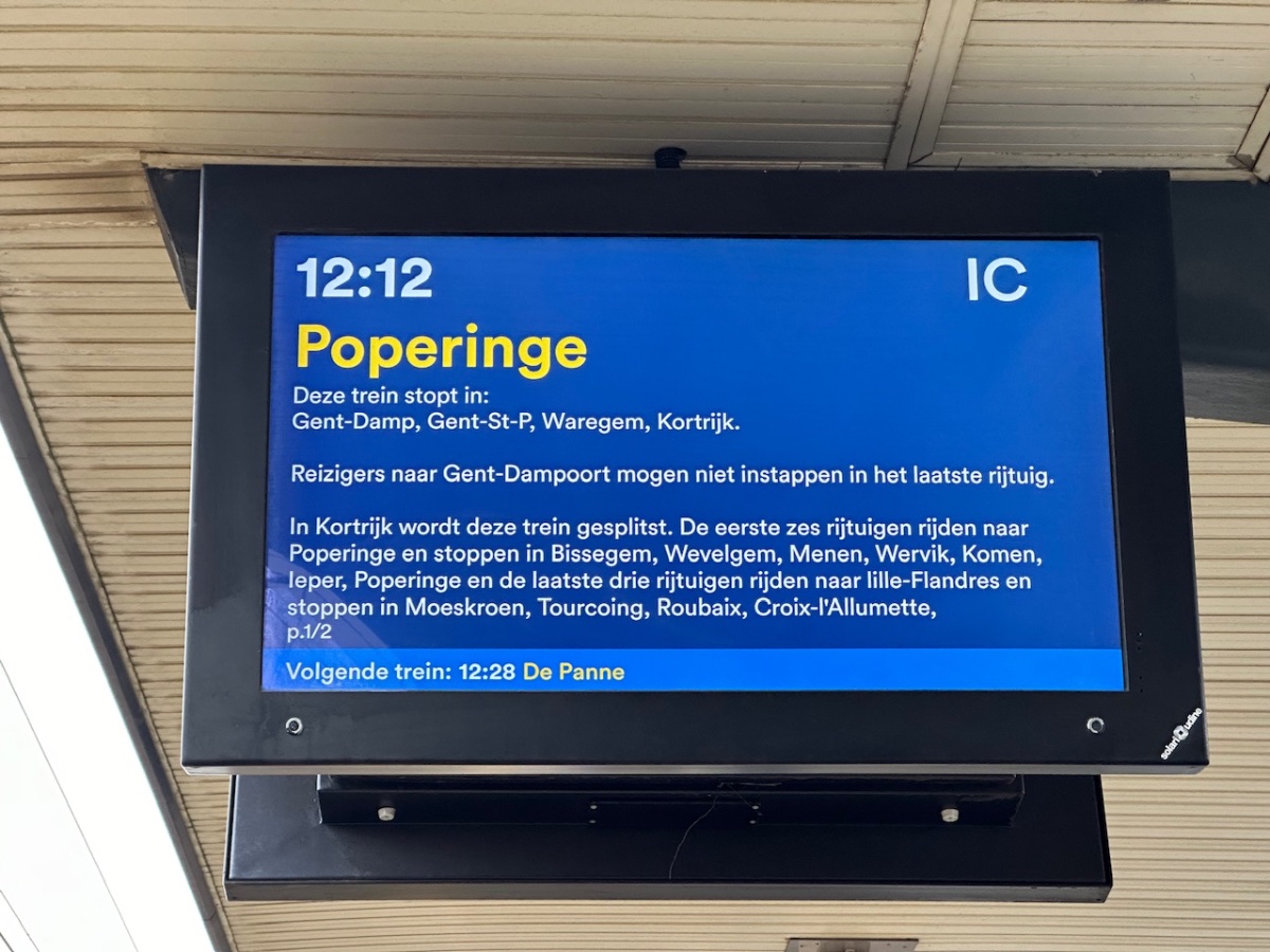 Natuurlijk, na 1 week is dat de P trein naar Denderleeuw en Geraardsbergen/Edingen/Halle op dezelfde manier dat de IC23 maar tot Kortrijk rijdt volgens de schermen, maar dat lost het probleem niet op, 1 enkele bestemming op die borden is een fout, dat ze het aanpassen zodat er minstens een tussenstop aangegeven staat, liefst meerdere zoals de grote schermen.