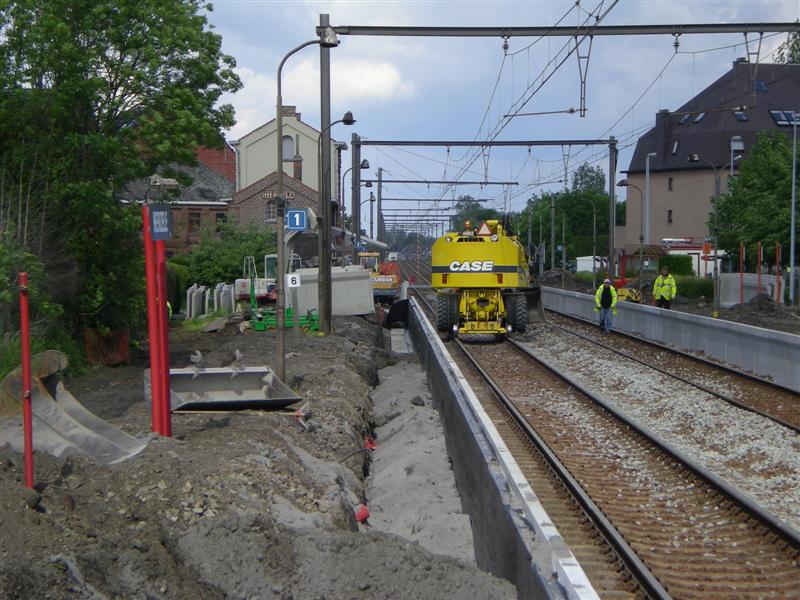 Intussen werkt men op lijn 89 (Kortrijk-Denderleeuw) ijverig verder aan het verhogen van de perrons.