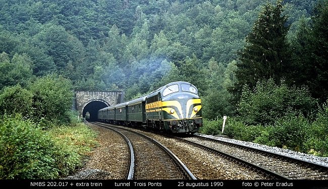 Met veel dieselgeweld kwam de NMBS 202.017 met de excursietrein de tunnel van Trois Ponts uitgereden en stoof de groep fotografen voorbij. Dat waren nog eens tijden......