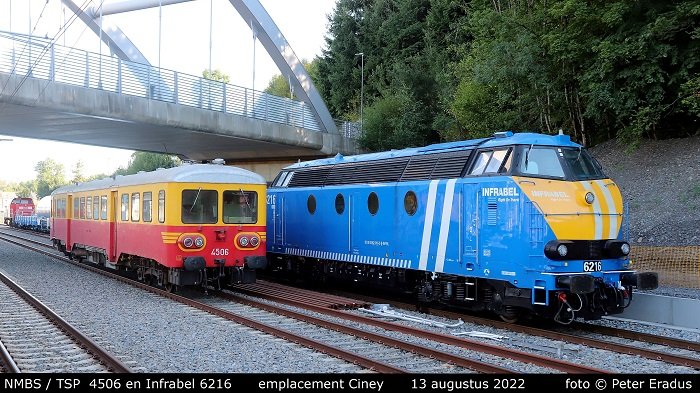 Een kleine materieelshow op het emplacement te Ciney met een motorwagen Reeks 45 en een Reeks 62 welke tegenwoordig rijdt voor Infrabel.