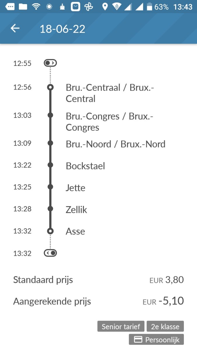 overweg13 schreef: 03 jul 2022, 18:29 ...mijn laatste uitstap, heen naar Marloie, terug van Liège-G. We deden dit met Railpass, maar je zou al een erg verstandig systeem moeten hebben om een app te kunnen leren dat je geen twee standaardbiljetten moet gebruiken.