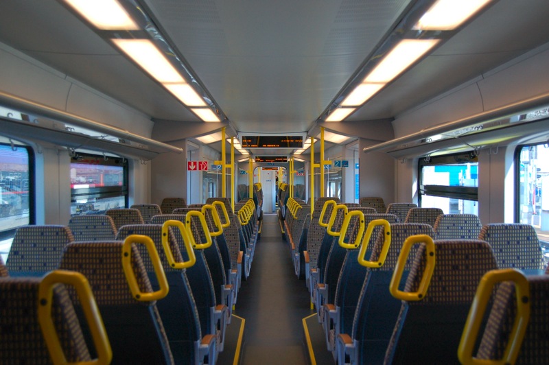 In bijlage een foto die ik van de Desiro ML gemaakt heb op Innotrans (Berlijn), opgelet, in deze foto zijn de rijtuigen iets korter dan de belgische versie en de kleuren van de zetels zijn natuurlijk verkeerd. Hij stond er afgewerkt voor een Duitse spoorwegfirma (Transregio).