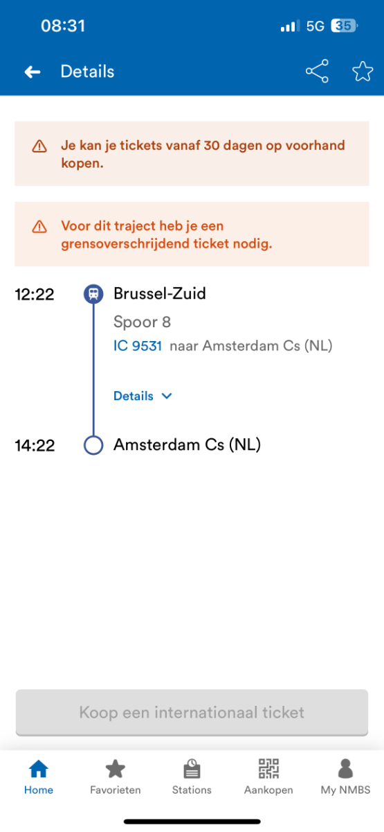 Brussel Amsterdam om 7u22/12u22/15u22/20u22