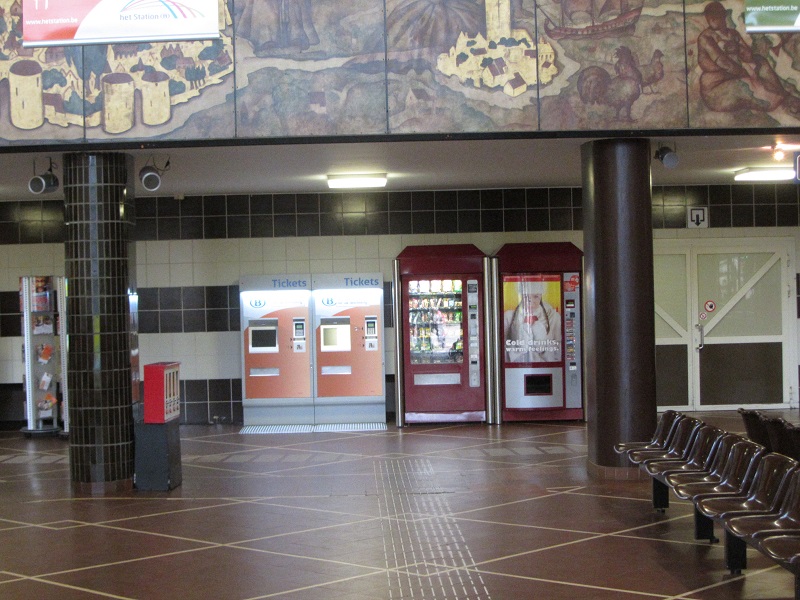 Eigenaardig genoeg staan er in Brugge nergens nieuwe automaten, in de hall staan nog de 4 oude automaten volop in werking.