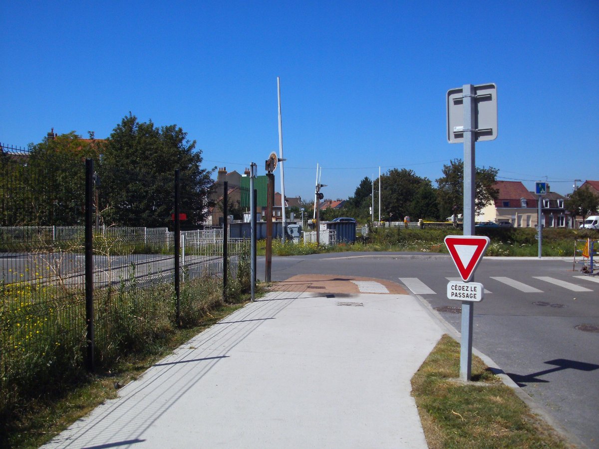 Tot in Duinkerken (rue des Forts). Dan volgt de spoorbrug over het canal de Bergues naar de actieve spoorlijn (Calais en Arras) .