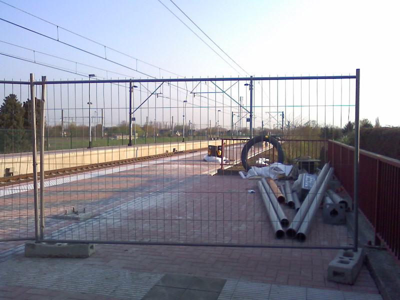 Zo ziet de 2de helft van perron 1 er nu uit: af, maaar er licht nog veel rommel. Ook nog geen naamborden (vooraan op de foto ligt er eentje, en ik denk dat ik op de achtergrond op perron 2 er ook 2 zie liggen naast de palen)