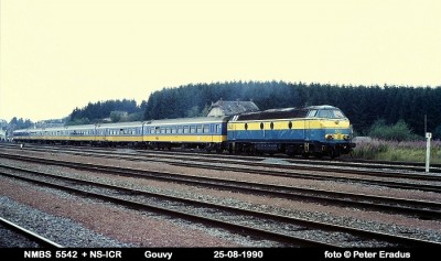 Uit die periode hierbij een opname van deze trein direct na het verlaten van grensstation Gouvy, met trein naar Luxemburg. In die tijd was deze lijn nog niet voorzien van bovenleiding, en werd er nog met de fraaie blauwe NMBS dieselloks reeks 55 (voorzien van elektrische treinverwarming) gereden.