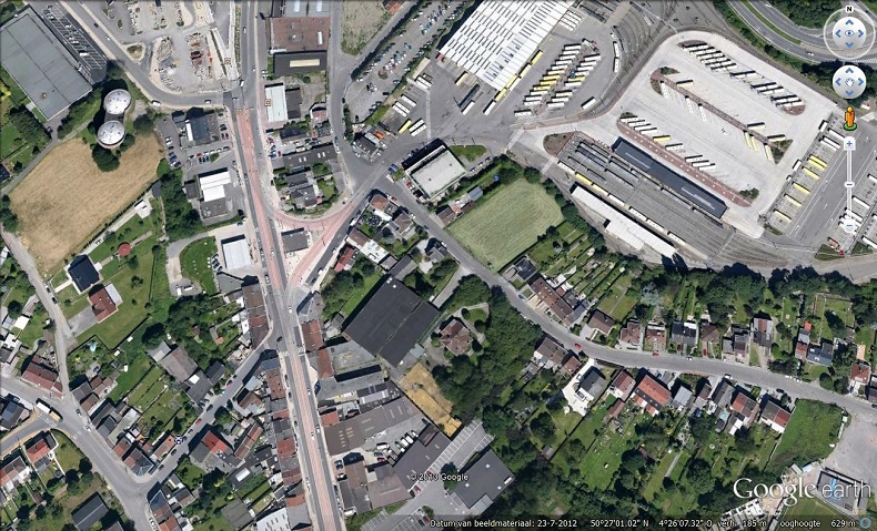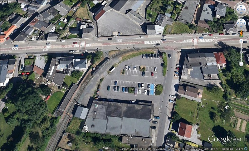 En nu het dus werkt gelijk maar een aantal foto's over Jumet (depot). Als je in Google Street view reist van Gosselies naar Charleroi kom je zeer merkwaardige beelden tegen: afwisselend MET en Zonder bovenleiding. De Google auto heeft in 2009 een aantal malen dit traject afgelegd- in Maart en April was de bovenleiding er nog, en in Mei was deze plotseling verdwenen...het is net een sciencefiction film met parallelle universa..... Probeer maar eens, een aanrader! Hierbij een 3 tal foto's uit 2009, waarbij opvalt dat de bovenleiding op de Chaussee nog wel aanwezig is, maar het depot geen aansluiting meer bezit.... en daarnaast een luchtopname uit 2012 van het depot; daar zijn zeer mooi de nieuwe sporen in aanleg en de nu dubbele aansluitbogen van en naar het depot te zien.