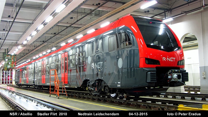 Op donderdag 3 december 2015 kwam in de avonduren de eerste R-Net Flirt aan te Nedtrain Leidschendam. Het treinstel is bestemd voor de Abellio treindienst op de lijn Gouda <> Alphen ad Rijn. Het treinstel wordt de komende periode onderworpen aan de toelatingstesten.