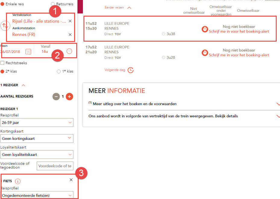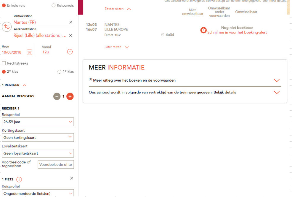 Ik wil op donderdag 26/07/2018 vanuit Antwerpen naar Rennes met een niet-gedemonteerde fiets.