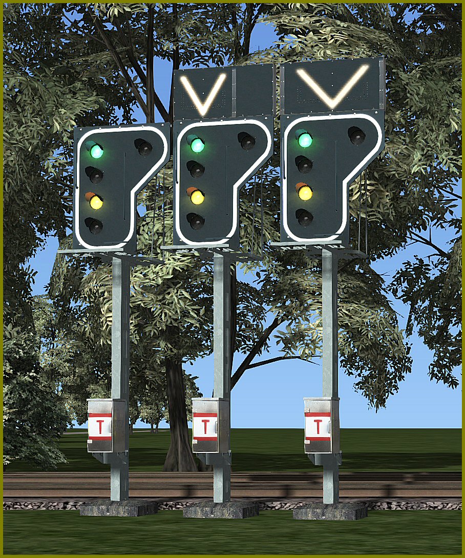 Dat is mij geheel duidelijk, met de opmerking dat in uitzonderlijke gevallen dezelfde aankondiging met de gele cijfers ook kan plaats vinden aan een sein dat Groen-Geel-Verticaal toont indien het afwaartse sein dat GroenGeel Horizontaal (+geel cijfer?) toont, op korte remwegafstand staat van het weer daaropvolgende sein met de feitelijke snelheidsbeperking.