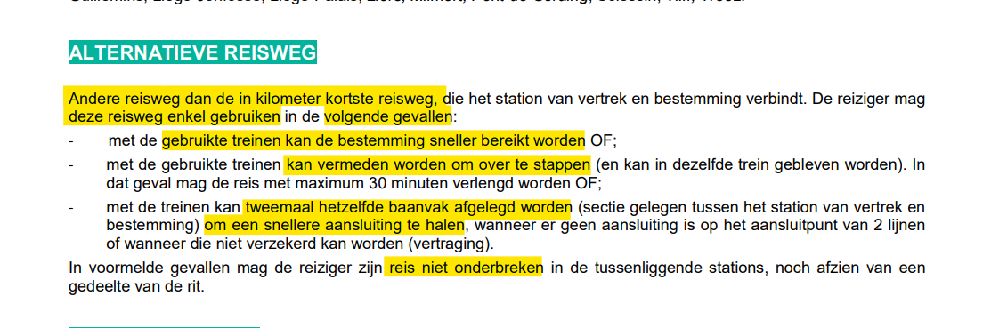 De reiziger mag deze reisweg enkel gebruiken in de volgende gevallen: