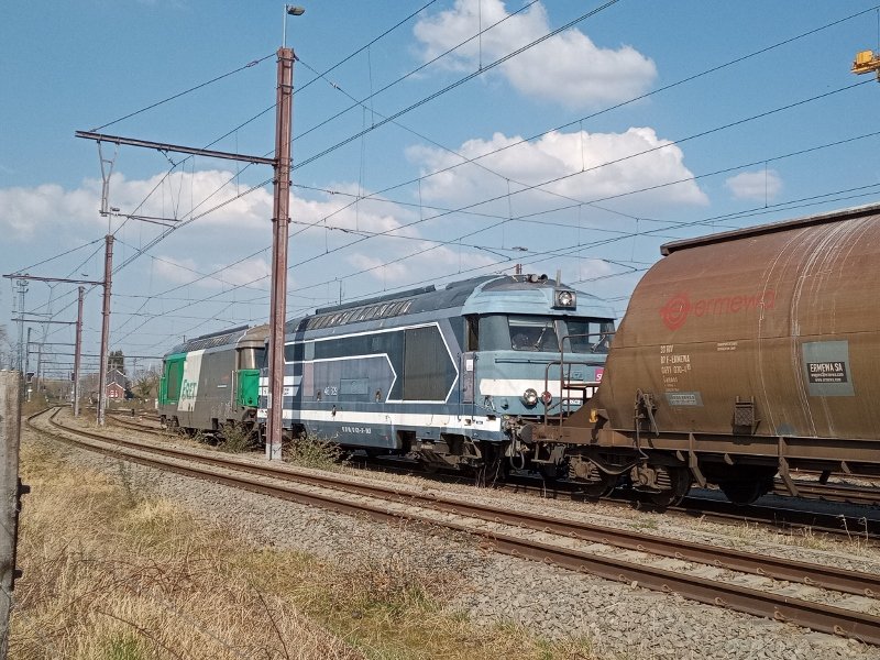 Blue 67629 is already at Somain - meanwhile Green 67460 and 67579 run light today from Lens to Somain to make up the trio allocated to these trains."