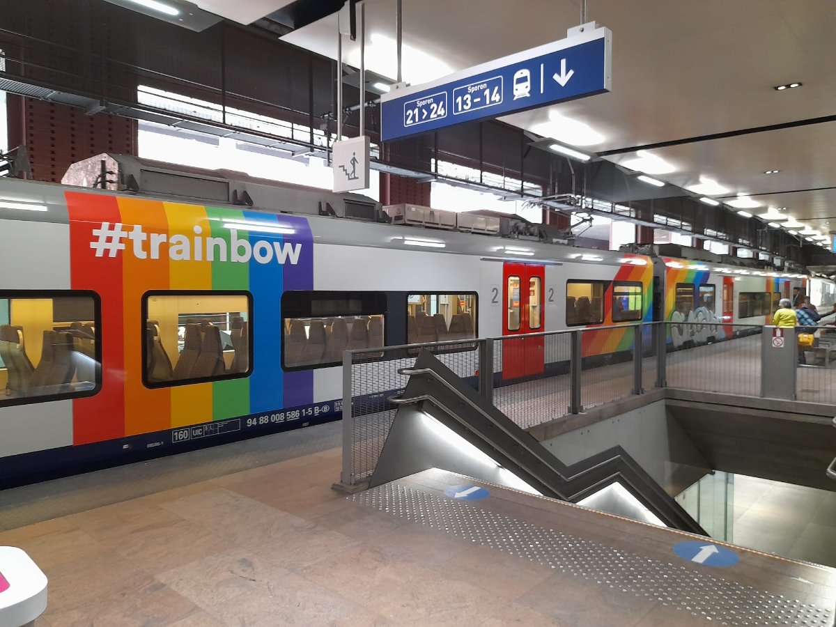 De NMBS heeft deze ochtend blijkbaar bekend gemaakt dat er een Desiro (08586) versierd is met een regenbooglivery. Welke werkplaats is hier voor verantwoordelijk? Iemand enig idee hoe lang deze de livery zal dragen?