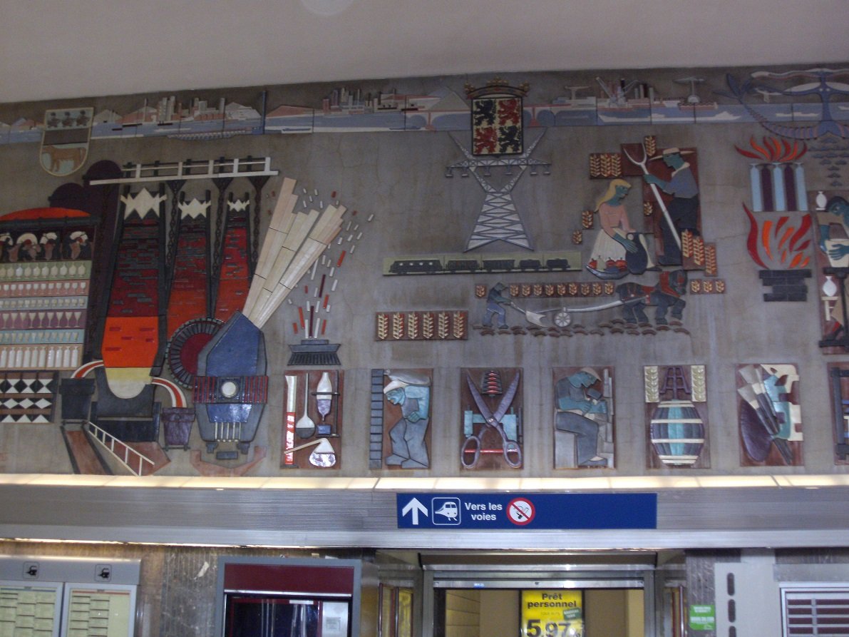 Laat ons hopen dat je je vergist en de keramische tegels verwijderd zijnmet het oog op een restauratie... Al sluit ik niet uit dat ze niet terugkeren naar het stationsgebouw, maar zullen verhuizen naar Keramis, een museum over keramiek vlak bij het station.