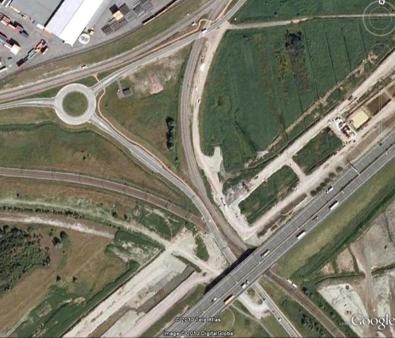 Ja klopt, de witte vrachtauto op de luchtfoto rijdt op die brug denk ik en daarvoor zie je nog een smallere weg die eerst een bocht maakt en dan over het spoor gaat.