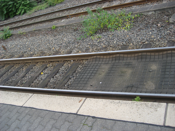 Het lijkt me niet voor water- of toiletdrainage te zijn, er zijn namelijk 3 dergelijke matten, elks ongeveer 10meter lang, met een behoorlijk gat tussen ieder van die matten, ongeveer zo breed als een dwarsligger.