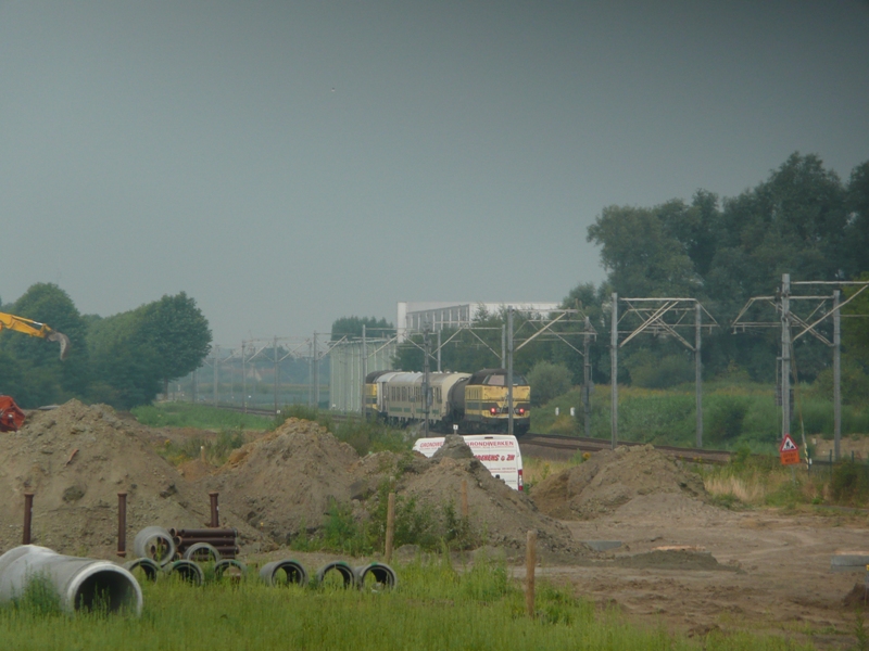 's morgens waren het meestal Desiro (denk toch dat die zo noemen, ben niet zo goed thuis in NMBS materiaal) treinstellen, rond de middag kwamen er twee of drie maal een dubbeldekstrein voorbij (zie foto), en die trein met M4 rijtuigen ingesloten door twee locs is al langer dagelijkse kost, heb die al dikwijls door Zarren zien rijden, na 17.00 uur