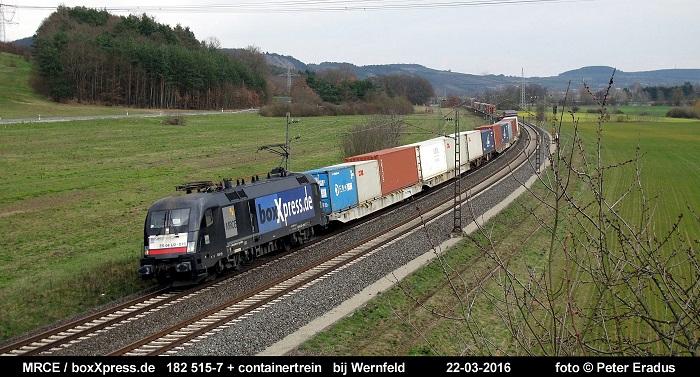 -> Op de onderste foto een "Taurus" van MRCE, welke is verhuurd aan boxXepress.de met containertrein onderweg van Würzburg richting Gemünden am Main.