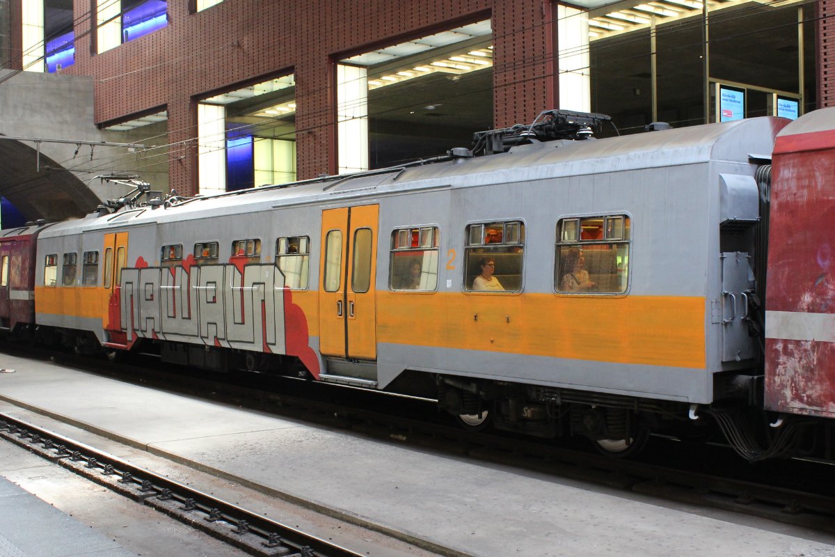 Hoewel je natuurlijk per definitie tegen graffiti moet zijn, kan je toch niet ontkennen dat dit professioneel gedaan is: een hele wagon in een historische kleur spuiten, met aandacht voor details zoals de deurhendels en de klasse-aanduiding en zonder de ramen te bekladden. Bovendien gaat het om een trein die binnenkort gerenoveerd gaat worden.