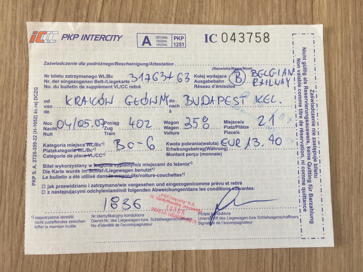 In de zomer van 2015 nam ik de nachttrein TLK 402 van Krakow naar Budapest-Keleti die ook stopte in Bratislava.