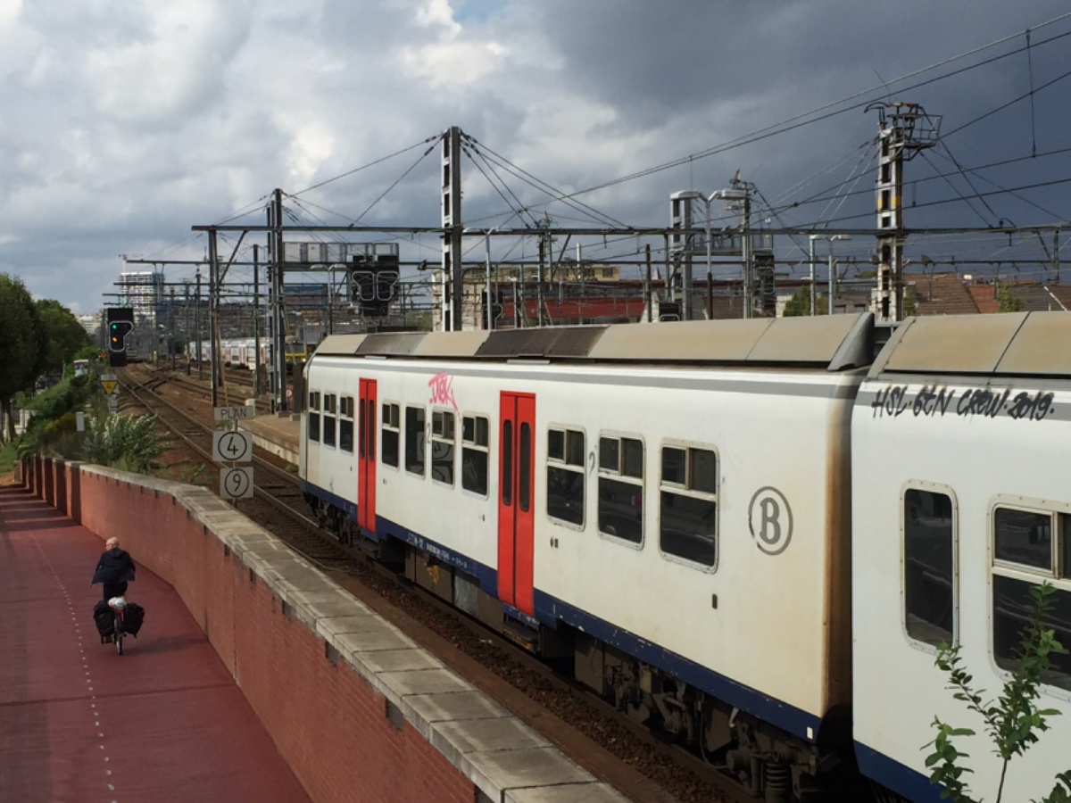 Twee Break treinstellen zonder graffiti met nummers 410 en 430 onderweg in de richting van Brugge.