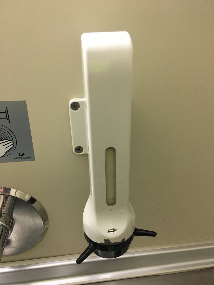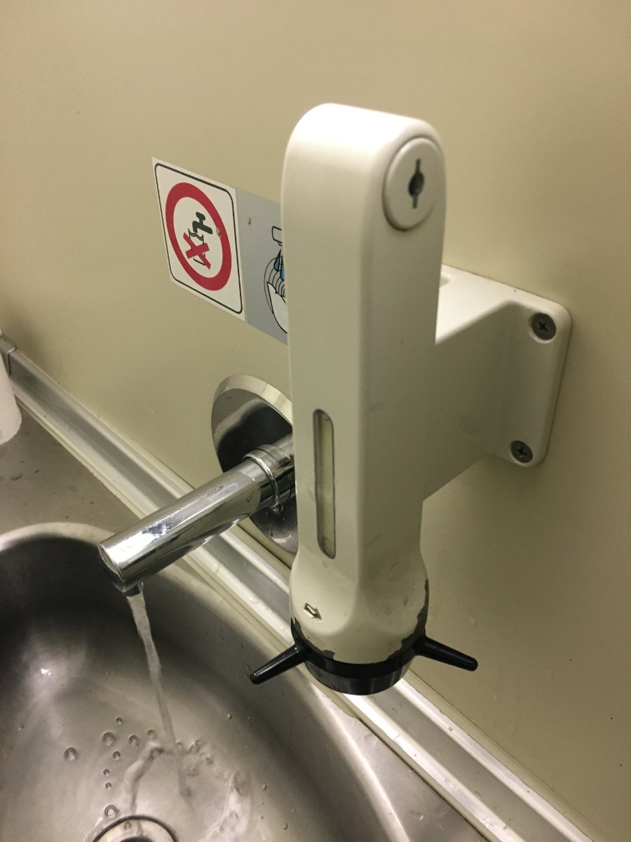 Voor zover ik weet zijn het de enige rijtuigen die nog van die speciale zeep hebben, zo'n vaatje waar je moet aan draaien en waar dus een soort poeder uitkomt. Eens je je handen onder de kraan steekt lost dat poeder op in het water. Heerlijk nostalgisch!