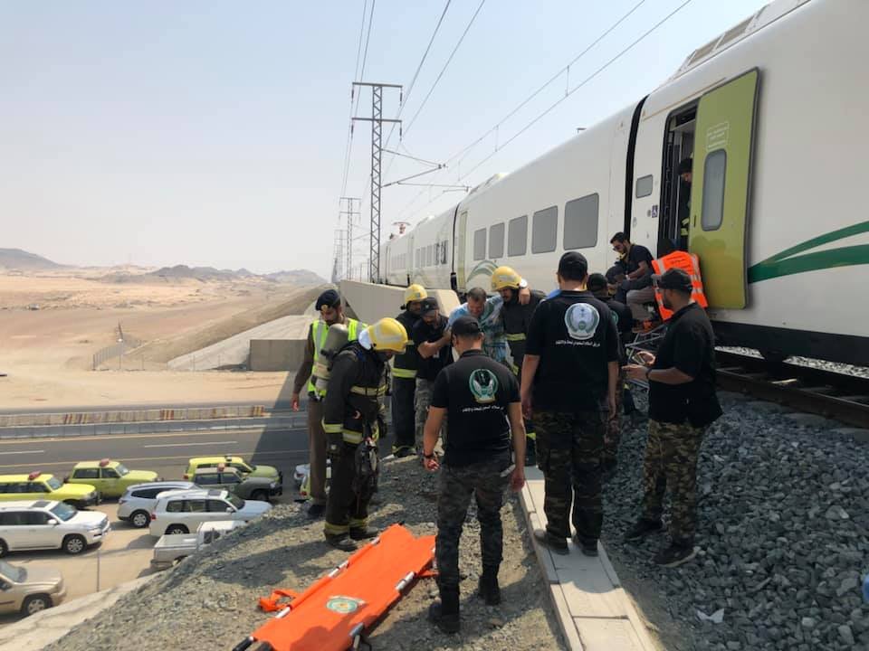 Wanneer men na uren eindelijk had beslist om de trein te evacueren, heeft men platformen ter plaatse gebracht om de reizigers veilig te laten uitstappen.