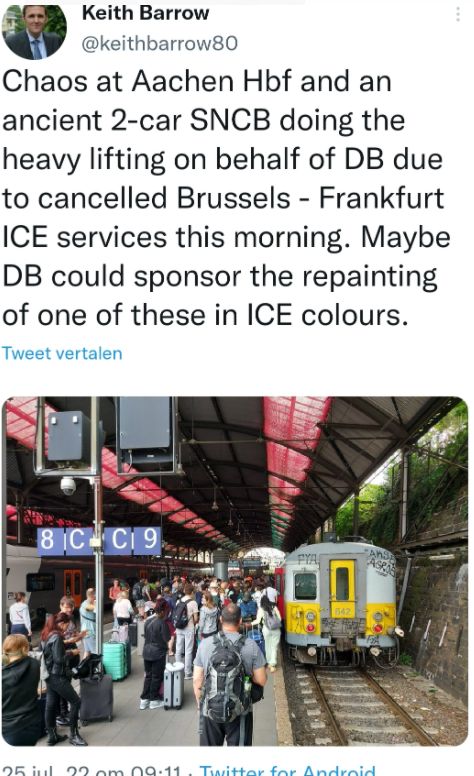 Shrek schreef: 27 jul 2022, 19:21 Ik zie net dat het buiten de vakantieperiode is dat ze soms met twee stellen rijden, in de vakantieperiode is het er steeds maar één. Das natuurlijk wel onhandig in deze ICE-probleemtijden.