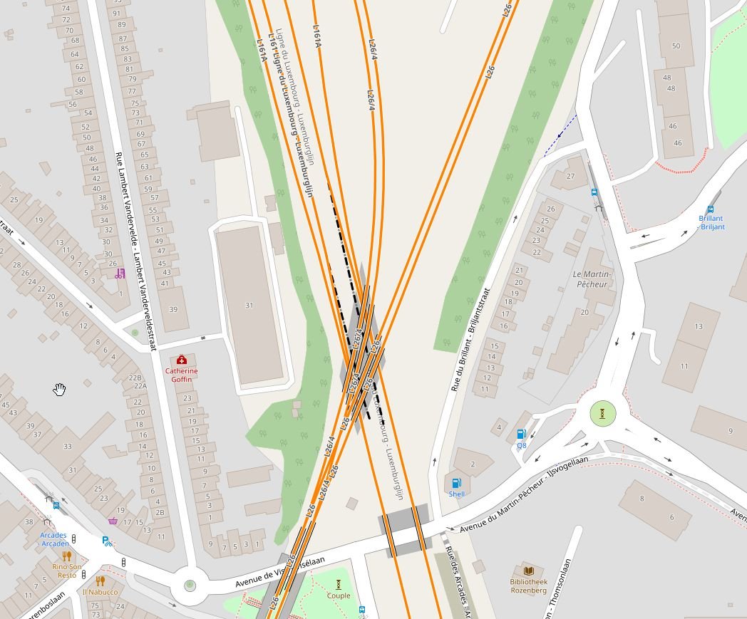 Dat ging inderdaad vlot, de eigen "vanilla" kaart van OSM heeft de wijziging zelfs nog niet op alle zoom-niveau's.Knipex schreef: ↑26 dec 2022, 09:03Dat duren was dan niet zo lang, want ondertss is ook OpenRailwayMap aangepast.jan_olieslagers schreef: ↑23 dec 2022, 10:28 Okee, ik heb het aangepast in OpenStreetMap, het zal wel een tijdje duren vooraleer de aanpassing ook zichtbaar is in OpenRailwayMap.