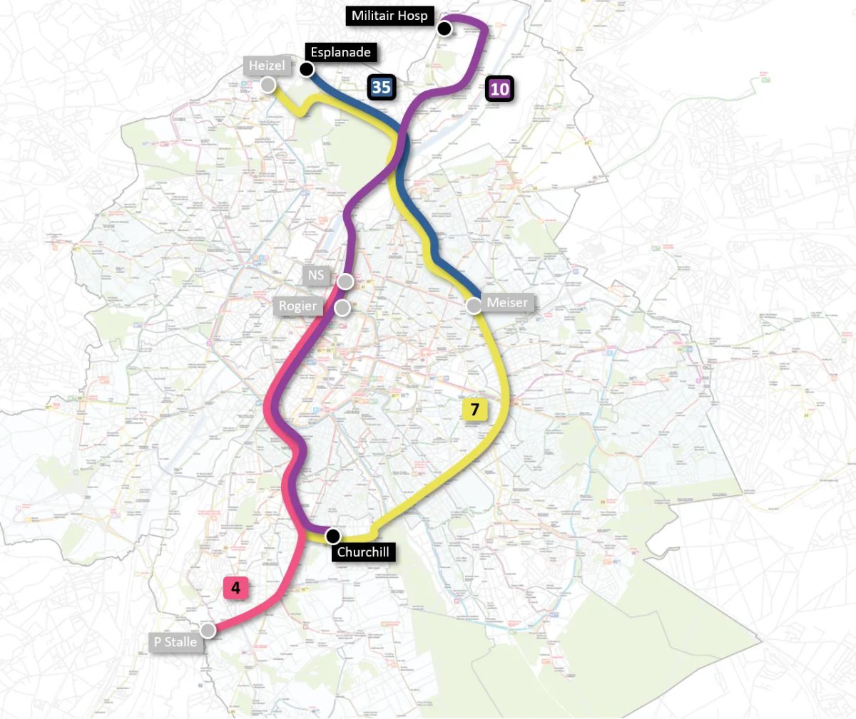 - Vanaf september: tram 10 zorgt ervoor dat buslijn 57 helemaal zal verdwijnen (en voor een stukje opgaan in buslijn 47), wat enigszins logisch is. Nieuw is dat er nu ook sprake is van een nieuwe tramlijn 35 tussen Esplanade en Meiser (eigenlijk Weldoeners/Bienfaiteurs, daar ligt een keerlus). Van de nieuwe lijnen 11 en 22 (ter vervanging van lijn 25) waarvan eerder sprake was, wordt niets gezegd, maar er wordt wel benadrukt dat de situatie met tram 35 slechts tijdelijk is. Waarop er gewacht wordt, weet ik niet.